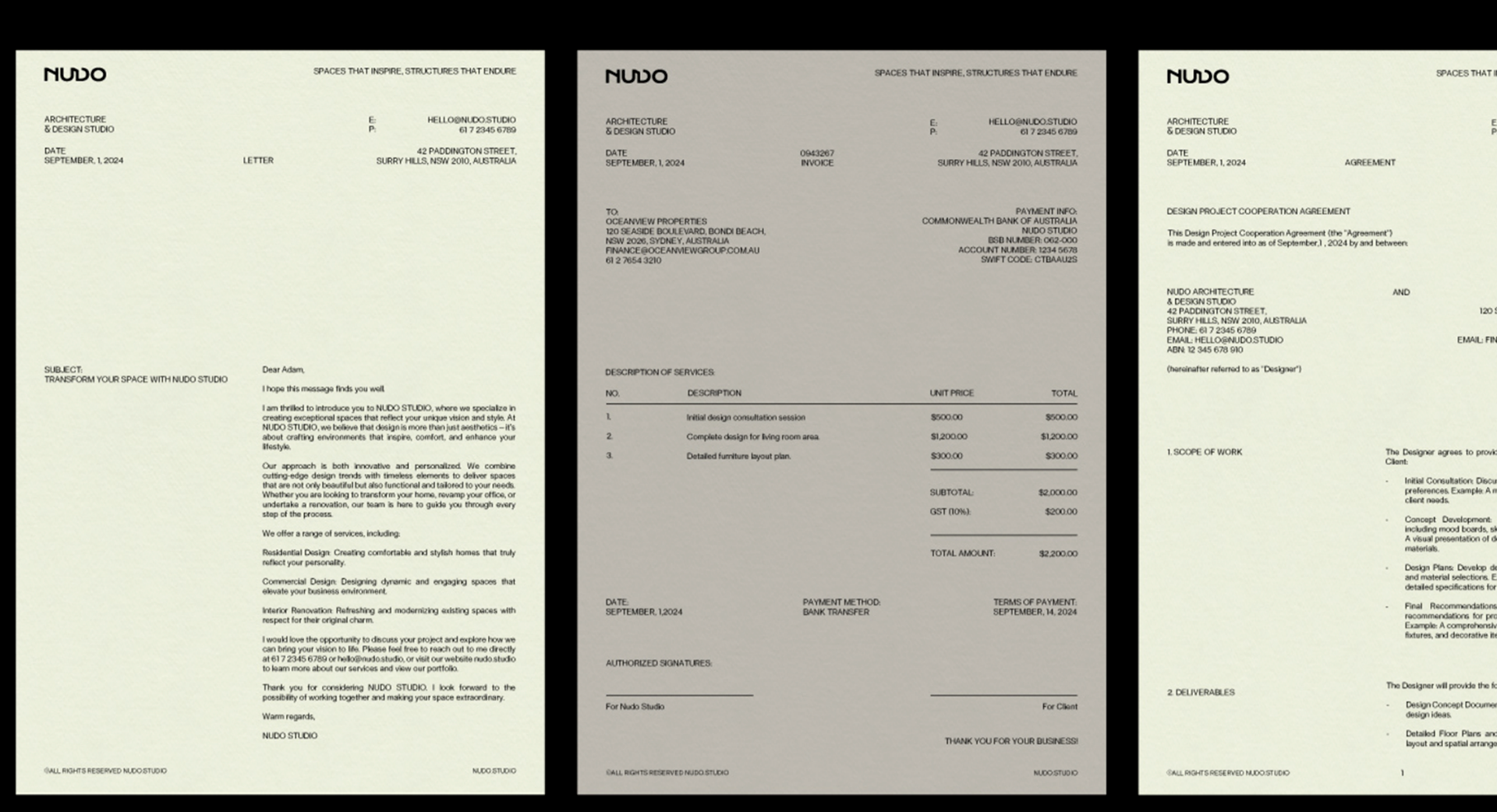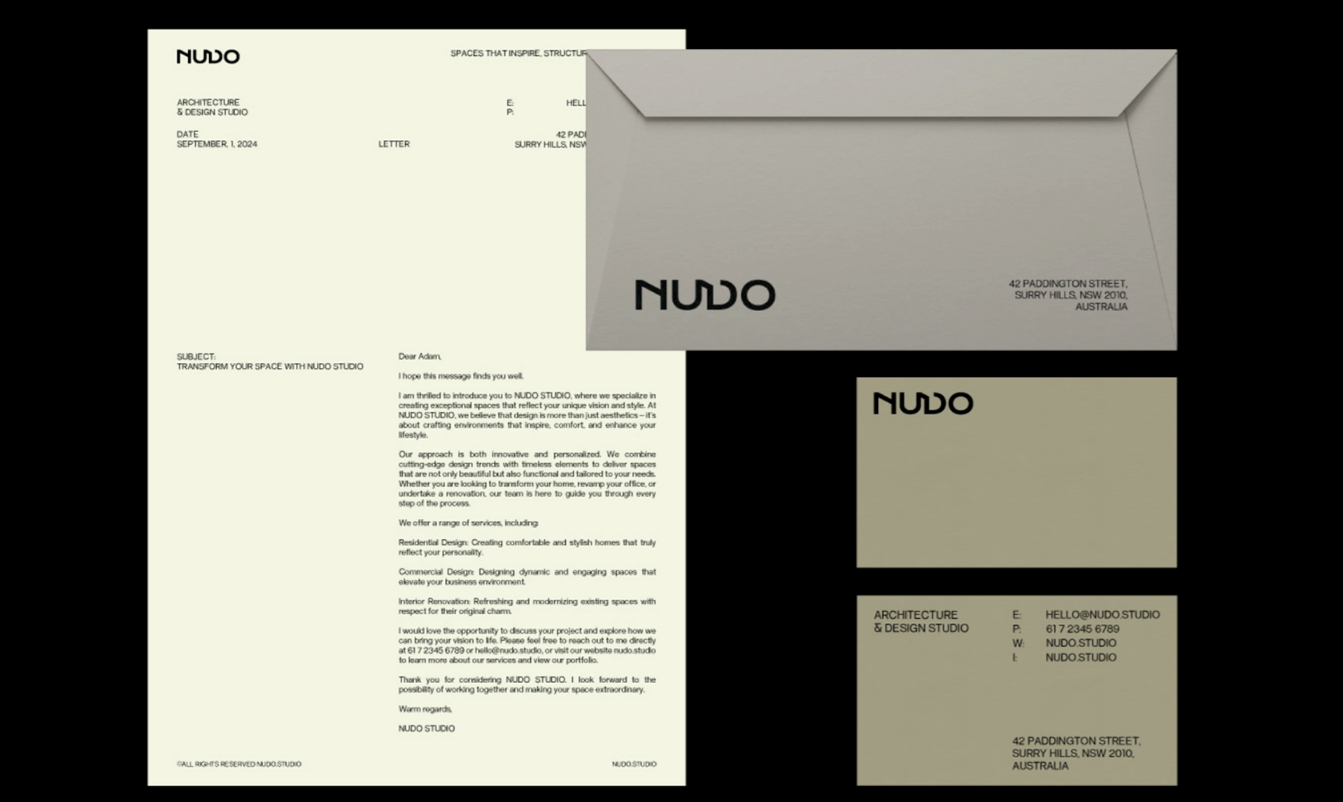 Branding design for Australian architecture studio. Including potential directions for advertising, logo design, accessories & supplies, website, social media posts, advertising & internal/ client facing documentation.